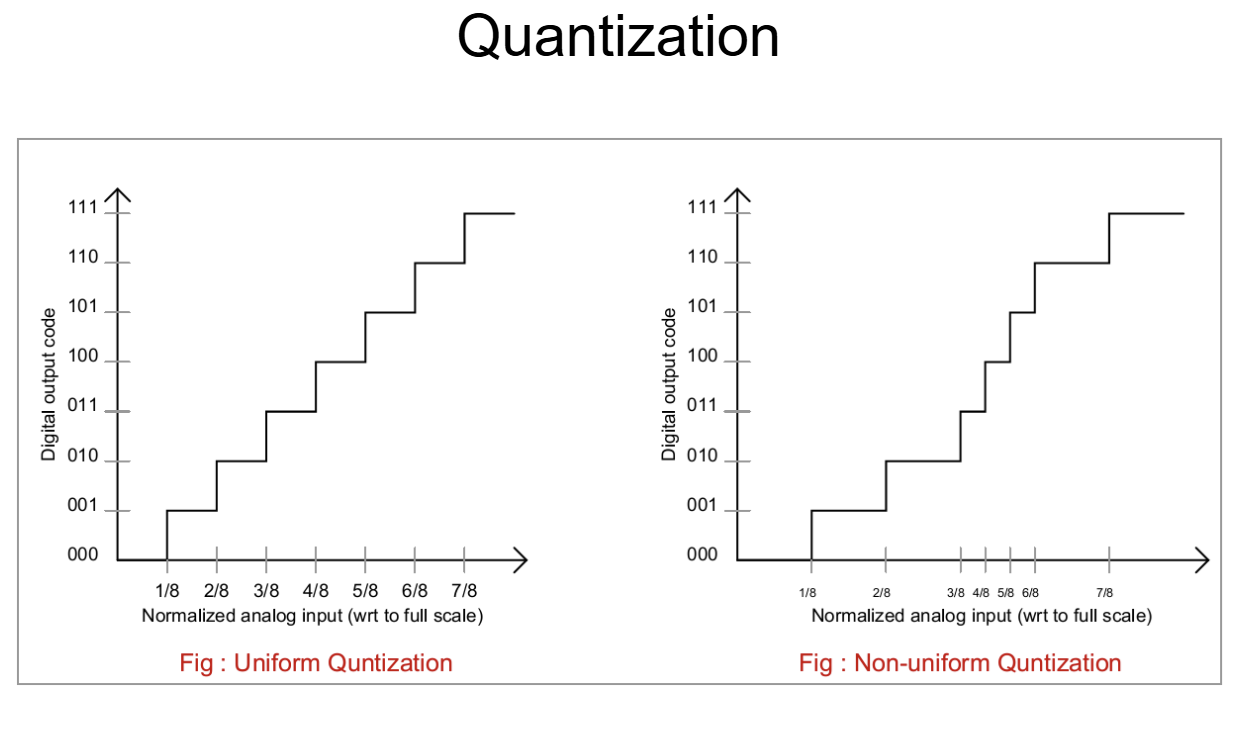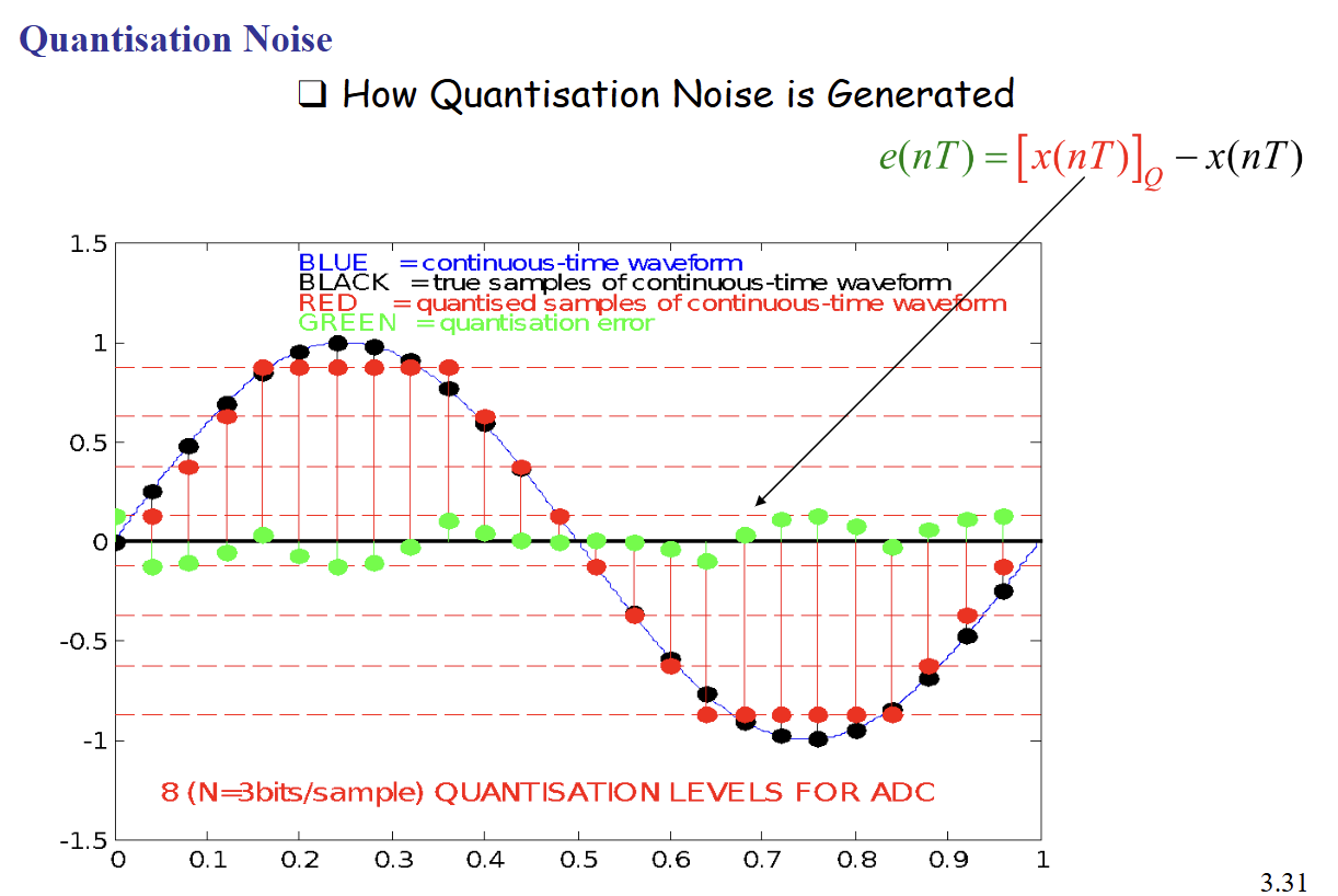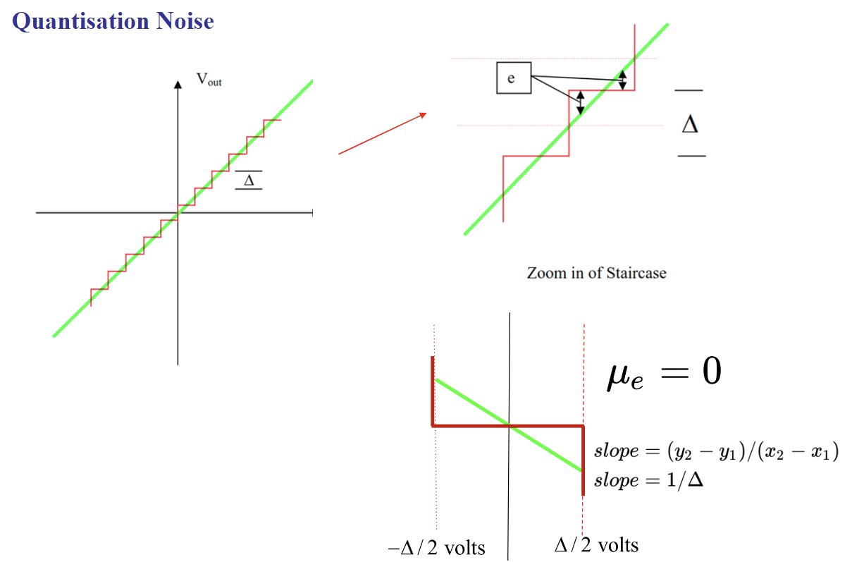 - Quantization noise power (uniform quantization):