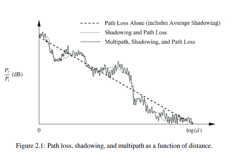 - Both of the above factors are deterministic, i.e. if we know distance between the TX-RX and may be something about how fast the power decays in some environment (again this is often random dependent on the geometric properties) then we can work out the received power. However, the scatterers present between RX and TX, may diffract, reflect or absorb RF signals. The phenomenon is known as shadowing. Shadowing is the attenuation caused by obstacles between the transmitter and receiver that absorb the transmitted signals.