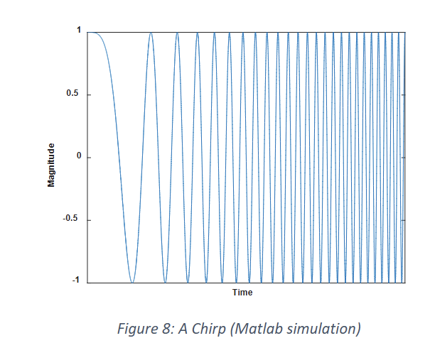 - A chirp sweeps the signal linearly across a wide bandwidth.