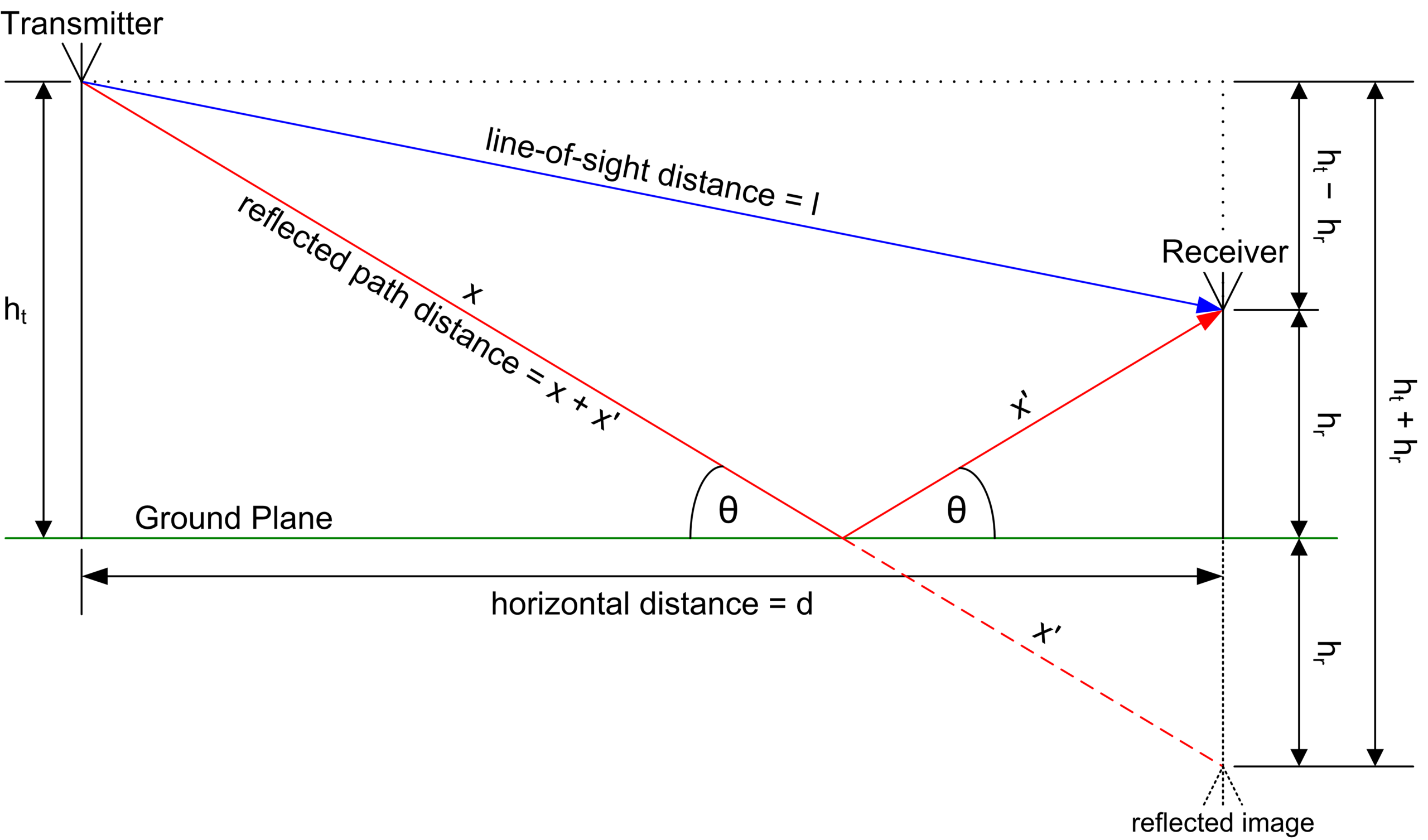 - dGR is the distance of the ground-reflected path